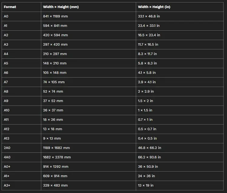 سایز کاغذ A0 چقدر است ؟